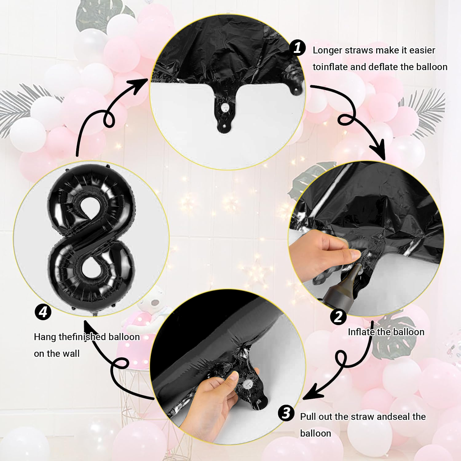ackage contents: 1pc Black Number Balloons with Bow Ribbon