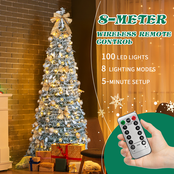 1. Fully Decorated: This fully decorated pop-up Christmas tree takes the stress out of holiday decorating. With its lifelike branches adorned with various styles of balls, white leaves, twinkling fairy lights, candies and ribbons, it brings festive magic to your space in seconds—no additional decor needed.