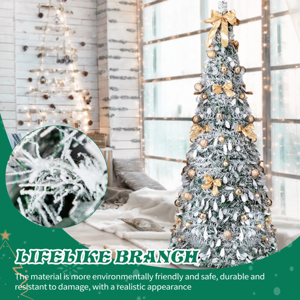 4. Effortless Assembly & Storage: This pop up tree features a quick and easy pull-up design, allowing you to set it up in just minutes. After the holiday, simply collapse it down for compact storage, saving you time and space.