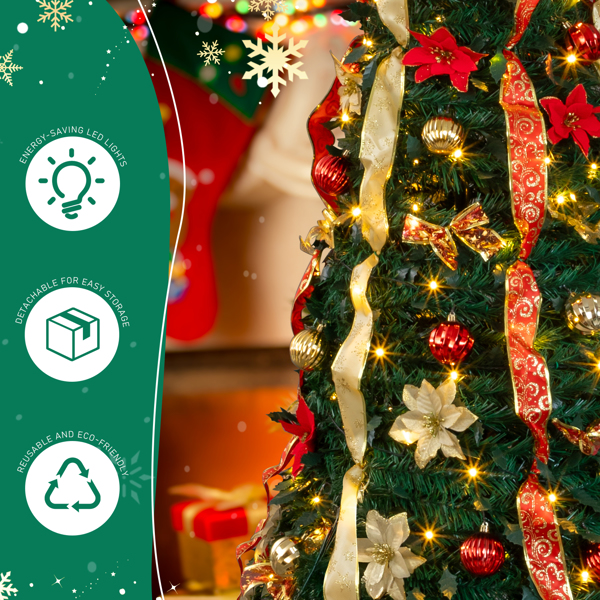 3. Effortless Assembly & Storage: This pop up tree features a quick and easy pull-up design, allowing you to set it up in just minutes. After the holiday, simply collapse it down for compact storage, saving you time and space.
