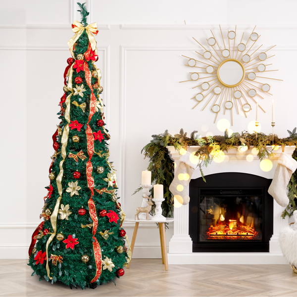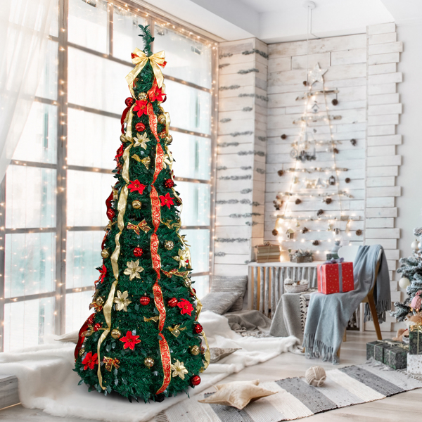 Home > 7 FT Fully Decorated Pre-lit Christmas Tree, Pop Up Artificial Xmas Tree With 200 Warm Lights Remote Control And Red & Golden Ornaments For Home