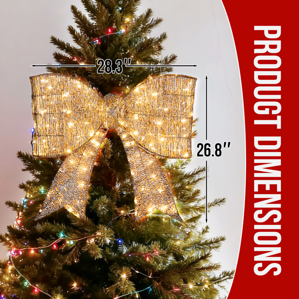 3. Easy Assembly: This collapsible Xmas bowknot can be set up in minutes, allowing you to enjoy your festive decoration without hassle. The lights are pre-installed, simply connect the wires, plug it in, and enjoy your dazzling holiday display.